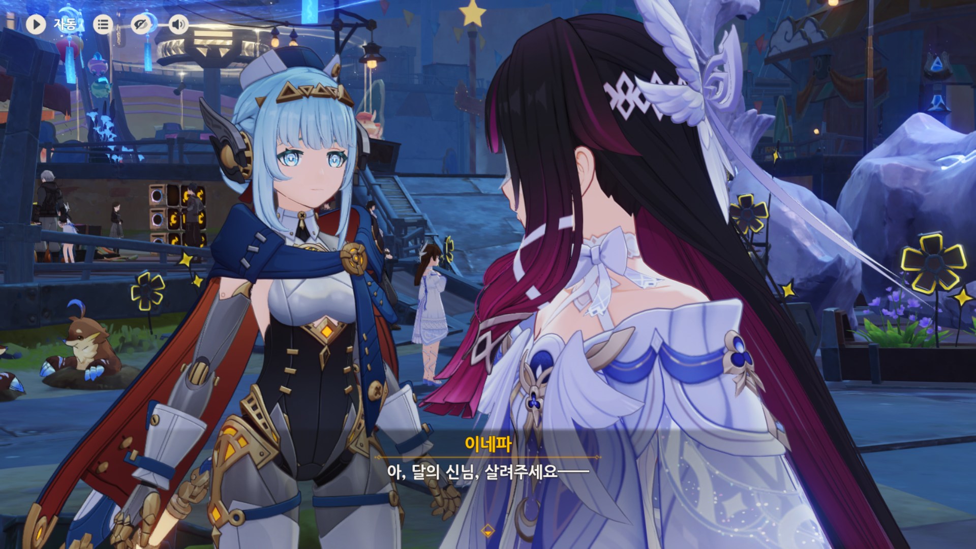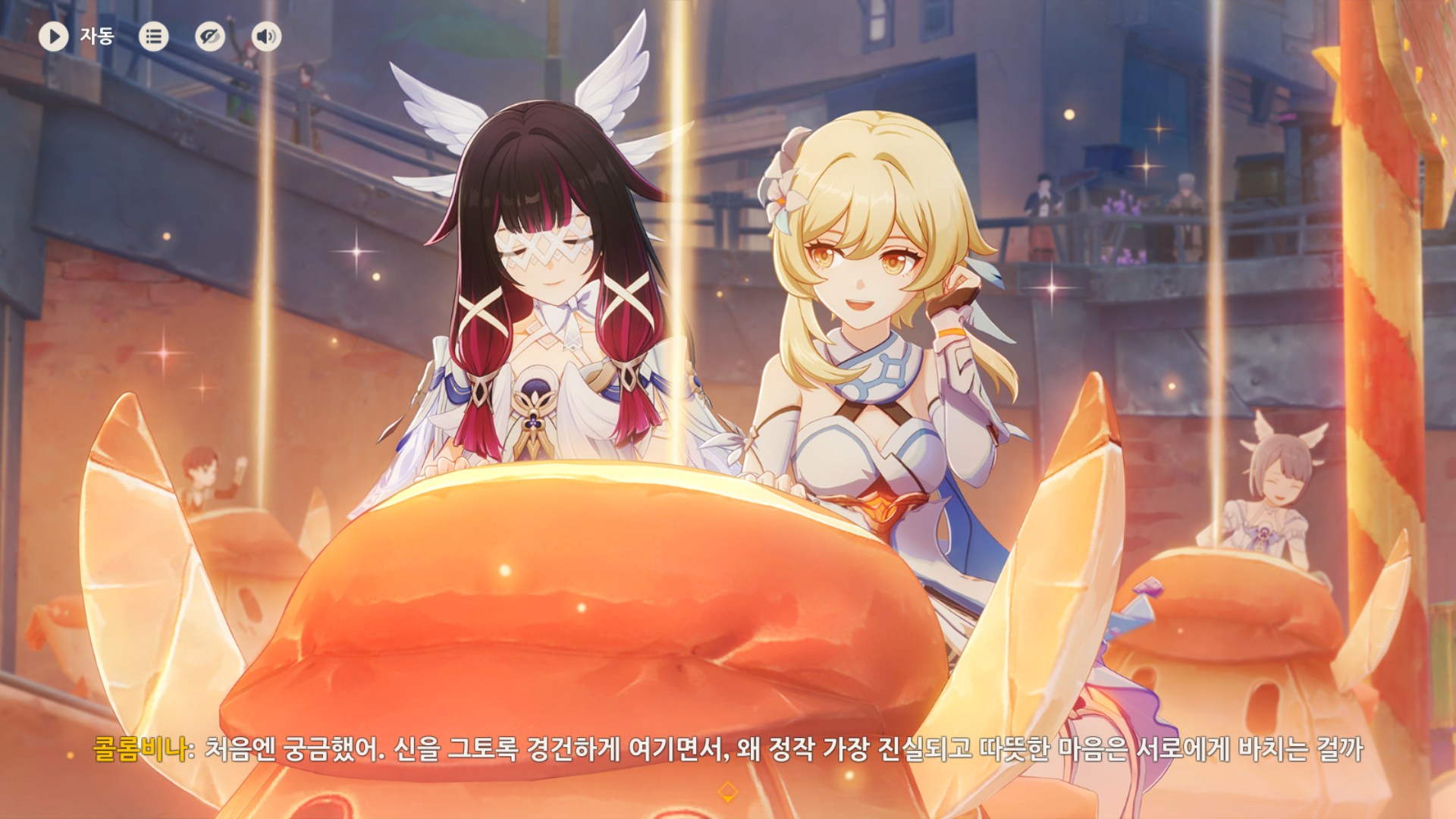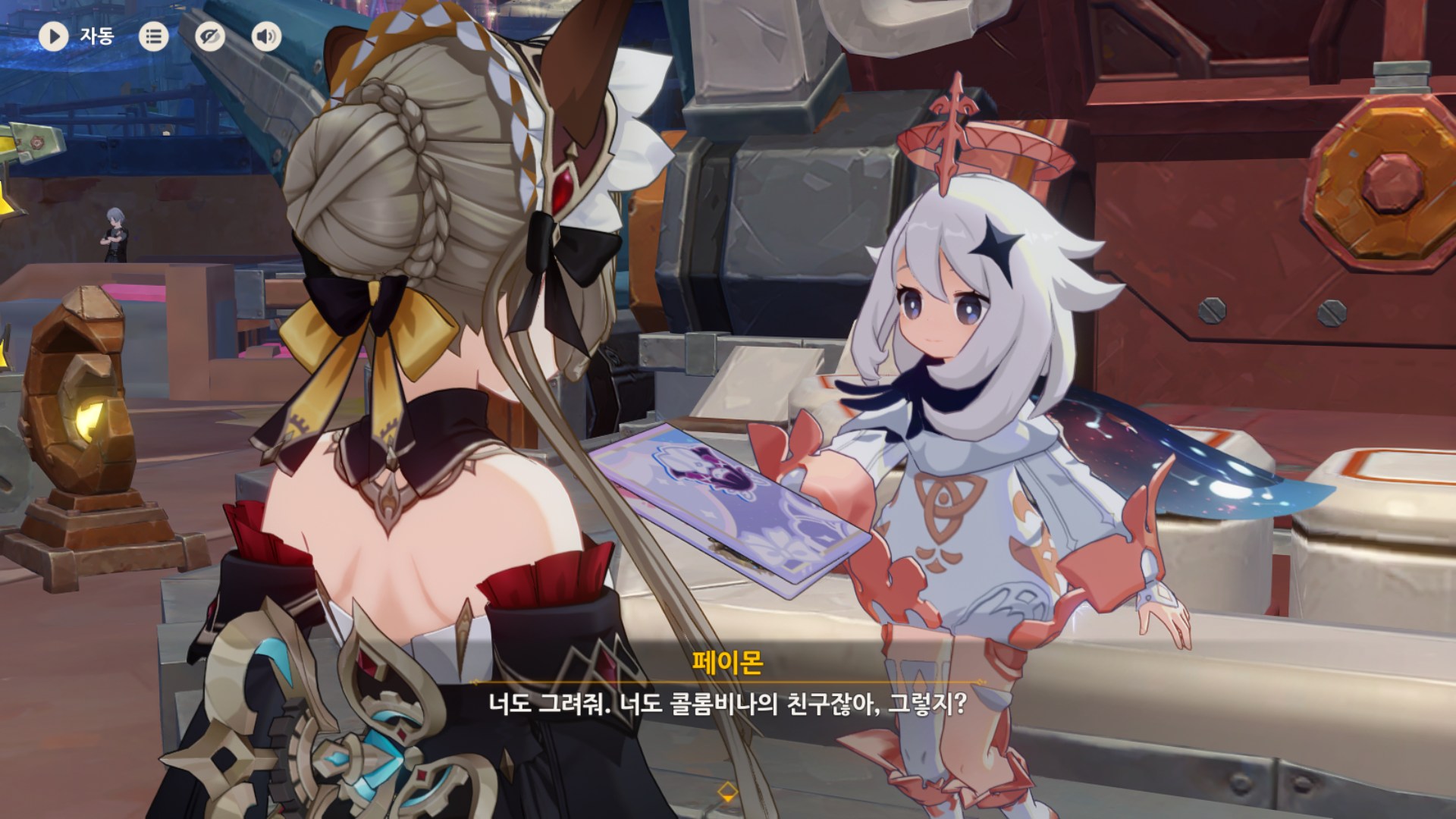 아니 전에 아를레키노랑 콜롬비나랑 몰래 다가가기 놀이하다가 콜롬비나가 달의힘써서 놀래켜주니까 아를레키노가 다시는안했다는거 그거는 노는거 아니었는데 이거는 진짜노는거같고 아진짜 저우인단여캐조가너무좋습니다.........................